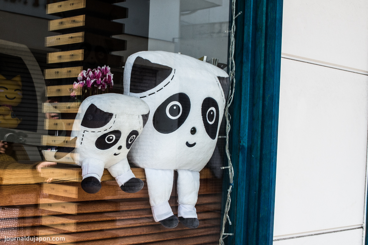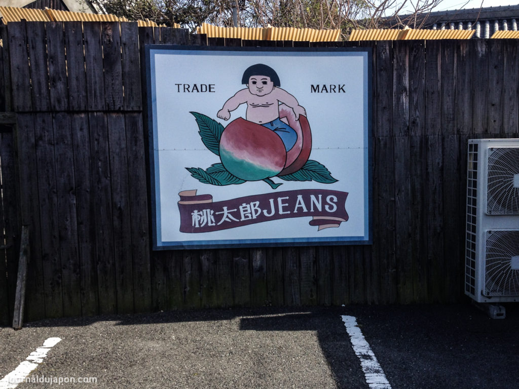 Le quartier possède, Japon oblige, sa propre mascotte appelée G-Panda, et même Momotaro, le personnage de conte et mascotte de la région d’Okayama – réputée pour sa production de pêches – y porte le jeans, ayant été pris pour emblème d’un fabricant.