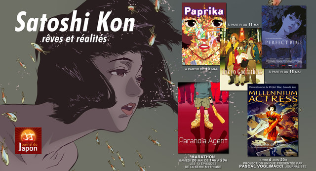 Une rétrospective dédiée à Satoshi KON sera présentée au cinéma Le Brady avec la participation de Pascal VOGLIMACCI pour la présentation de Millennium Actress (le 4 juin) et que vous avez déjà eu l’occasion de lire à plusieurs reprises sur notre site et qui avait déjà consacré une critique sur l’inoubliable Perfect Blue.