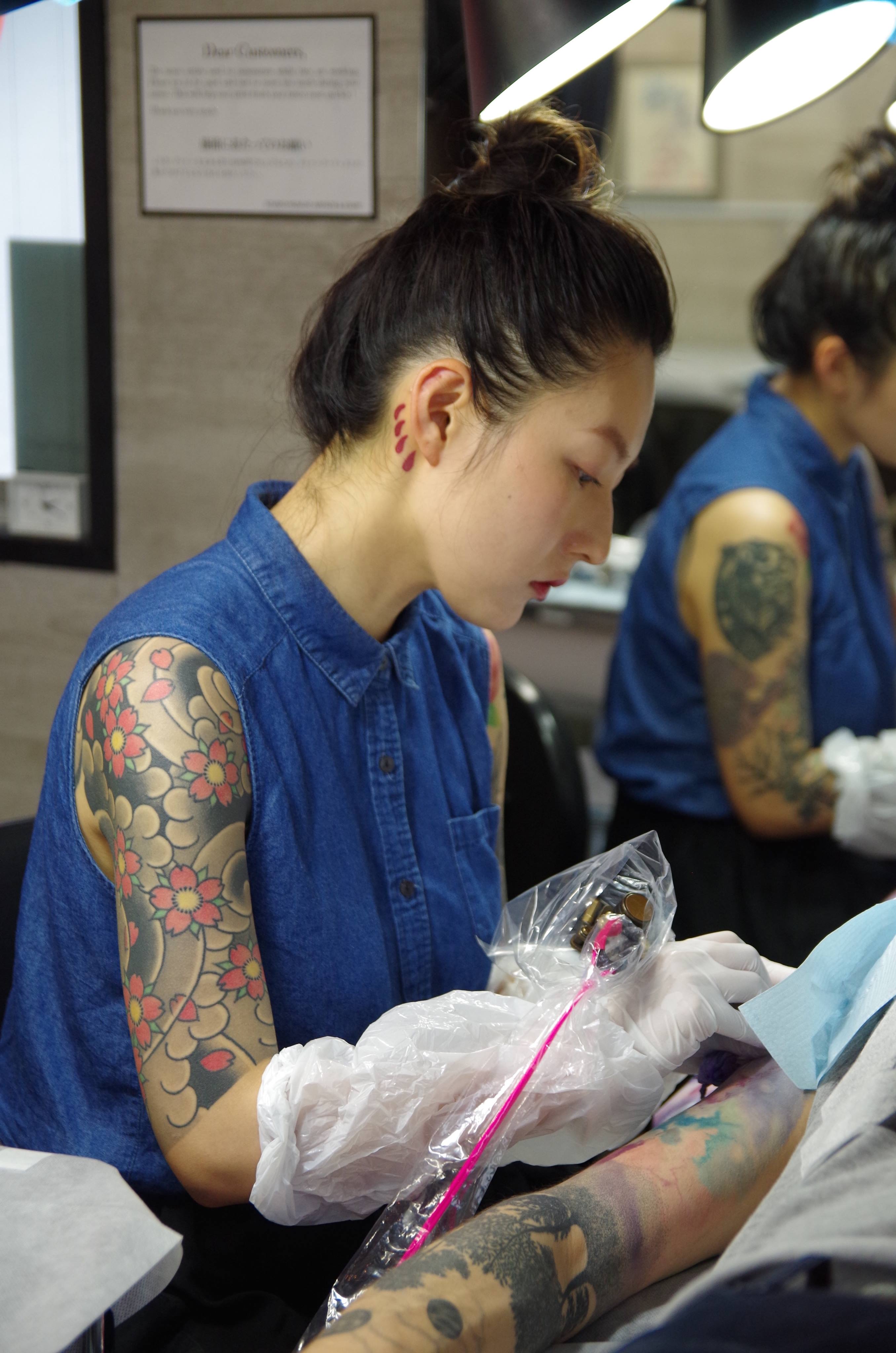 Haruka: At the moment, there is an old law stipulating that you must have a doctor’s degree in Japan to work as a tattoo artist. Most Japanese tattoo artists see this as a bad idea and many people are campaigning for a specific tattooist license.