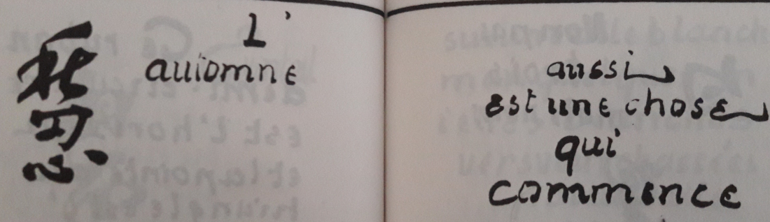 « Qui m’aurait permis – ce n’est pas ce pinceau déjà vibrant au plus délié de mes phalanges, ce n’est pas ce papier offert, aussi craquant que la soie, aussi tendu que la corde sous l’archet, aussi moelleux que le brouillard – de résister à la tentation là-bas pourtant ambiante de la calligraphie ? »