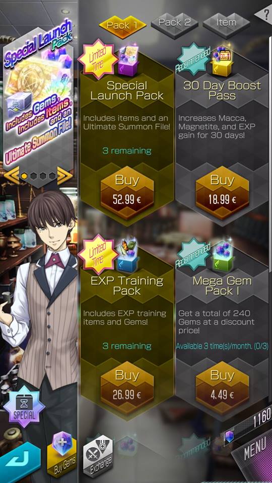 Ce jeu est bel et bien gratuit mais avec option d’achats dans le jeu. Ces achats sont des raccourcis pour les joueurs les plus pressés. Il y a des éléments de style gachapon mais le jeu n’est pas vraiment un Gacha game car les joueurs peuvent obtenir de meilleurs démons sans ces achats grâce aux fusions et en laissant le temps au temps. Il n’y a pas de publicité dans le jeu. [NDLR : pour plus d’infos sur cette mode japonaise des Gacha games]