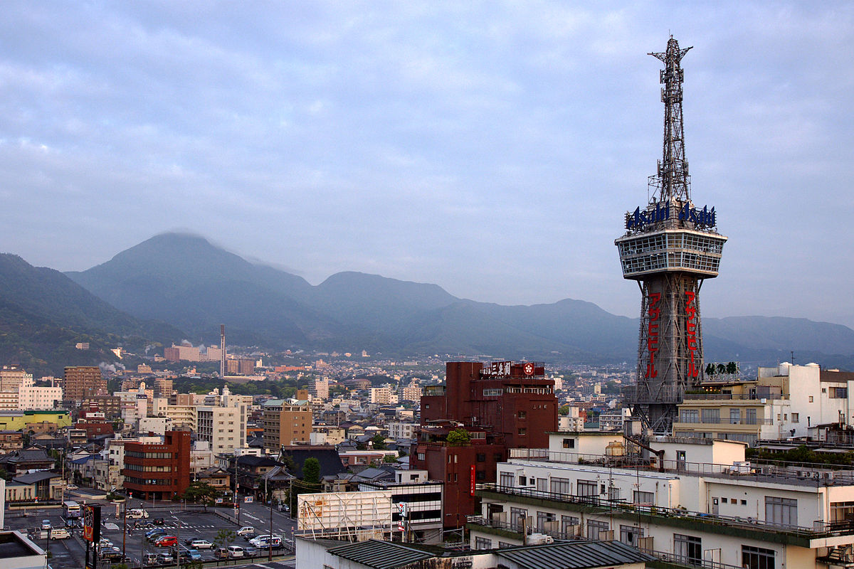 Entourée de montagne et de la mer, Beppu bénéficie d’une situation géographique idéale pour les sources chaudes. Crédits : Wikipédia @Miya.m