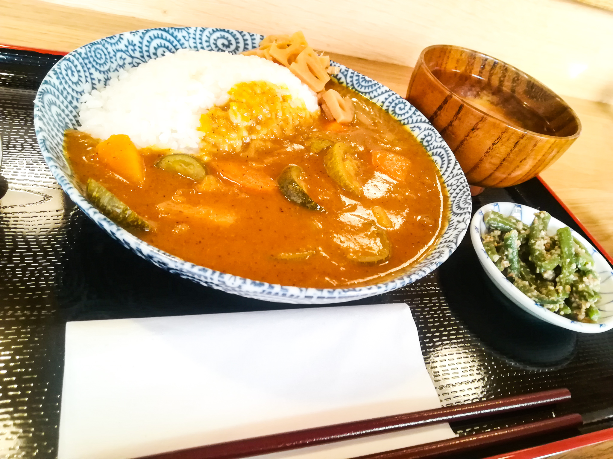 Chaque jour, deux plats différents sont proposés, dont un végétarien. On a personnellement opté pour un gyûdon, bol de riz chaud surmonté de lamelles de bœuf et d’oignons, et notre binôme a choisi un curry aux légumes. Comme le veut la tradition du Teishokuya, on accompagne le tout avec un bon sencha. Que dire de plus à part que l’on a voyagé sans billet d’avion ?