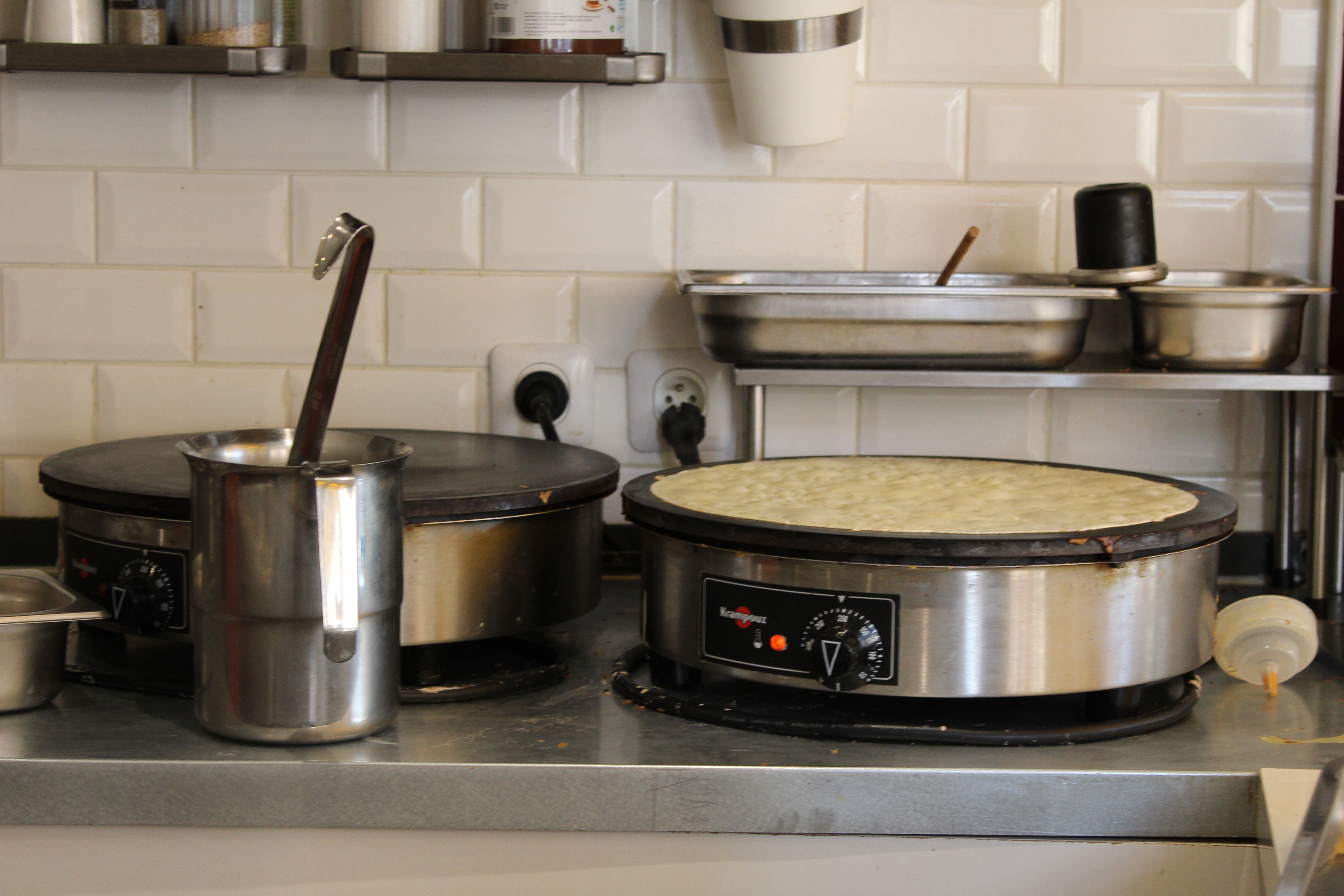 C. : Alors une crêpe réussie… (Rires.), déjà la manière de la faire. Nous proposons une crêpe plutôt croustillante autour et moelleuse au milieu. Et une bonne crêpe, quand on la retourne, on voit comme des tâches, si c’est le cas c’est une bonne crêpe. Mais également la bonne quantité de beurre pour que ça ne soit pas trop lourd.
