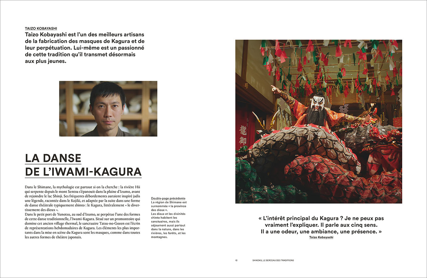 Se souvenir d’Hiroshima, faire le pèlerinage de Shikoku, découvrir qu’il y a des champs d’oliviers sur Shôdoshima, admirer des poteries Bizen épurées et inspirées, contempler les masques de kagura, une danse théâtrale rituelle qui se perpétue grâce à un passionné (qui fabrique ces masques à partir de papier et enseigne cette danse aux plus jeunes) dans la « province des dieux », et pourquoi pas faire du parapente dans les dunes de Tottori !