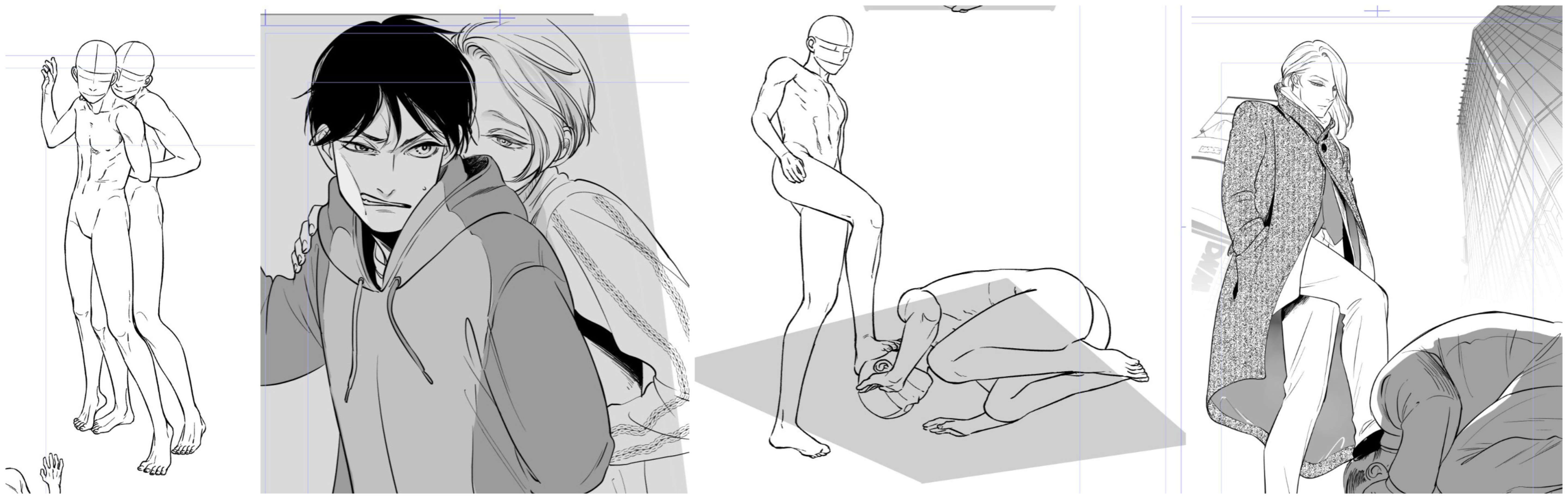 Les planches sont magnifiquement exécutées par les traits précis et délicats d’une artiste reconnue pour son habileté, qui a illustré plusieurs guides pratiques destinés aux dessinateurs débutants et confirmés, dont certains étaient essentiellement basés sur les différentes positions sexuelles à utiliser dans les Boy’s Love, comme nous l’expliquions en préambule de l’article.