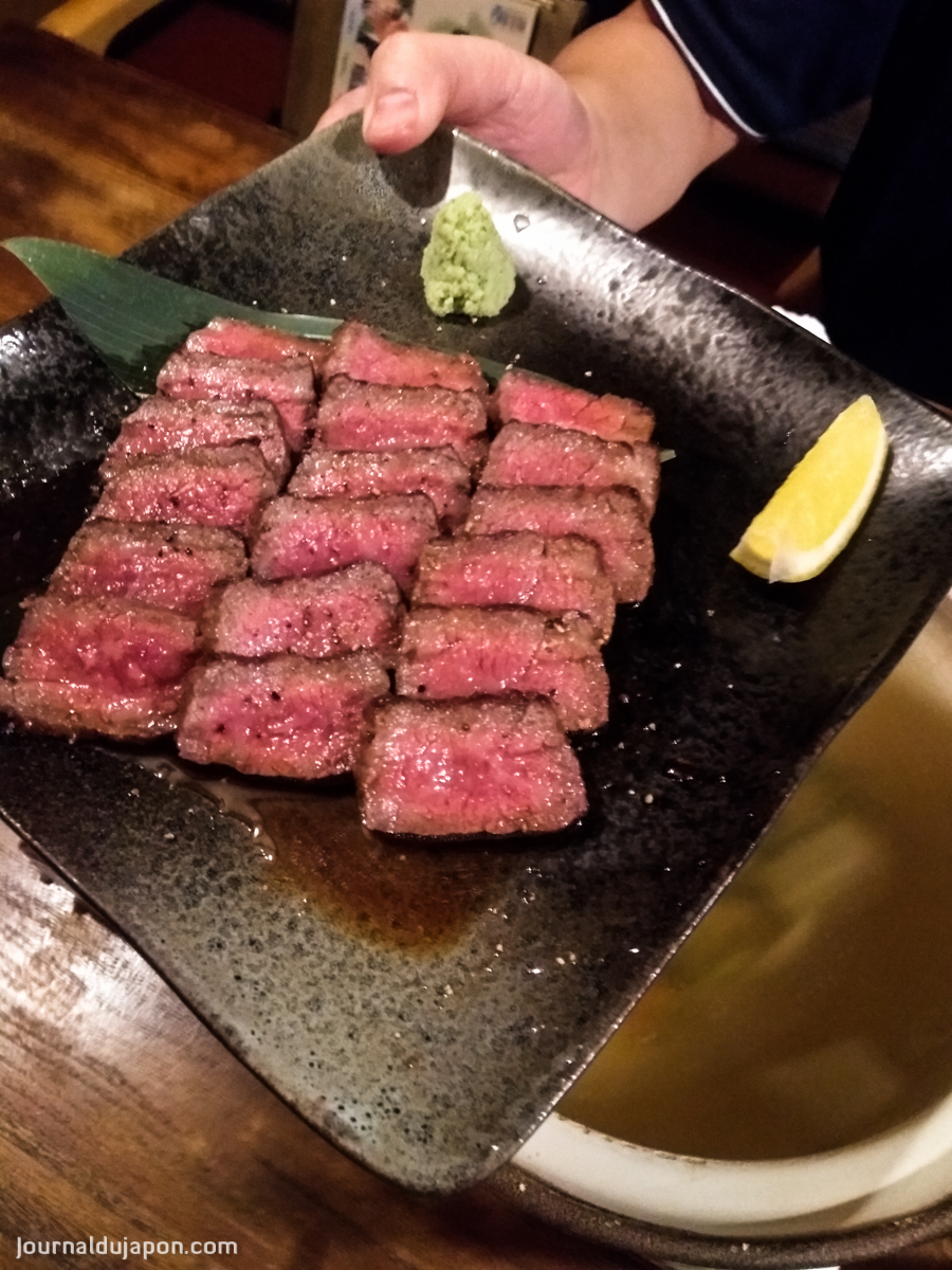 Mais les produits de la pêche sont loin d’être les seules spécialités locales puisque 1/6ème de la surface de la préfecture de Shiga est ainsi consacrée à l’agriculture qui produit thés, riz et légumes de qualité. Et en dehors du funazushi, le produit qui fait la réputation de cette province est le bœuf de Ômi. Il s’agit du bœuf wagyu, le plus ancien du Japon ((Ndlr : bœuf noir du Japon dont l’élevage est institutionnalisé depuis 400 ans) et l’un des trois plus réputés du pays, à l’égal du bœuf de Kobe et du bœuf de Matsusaka. Ce produit fort apprécié est bien évidemment un habitué des tables de la région, et certains établissement proposent une carte lui étant entièrement consacrée. Un vrai délice !