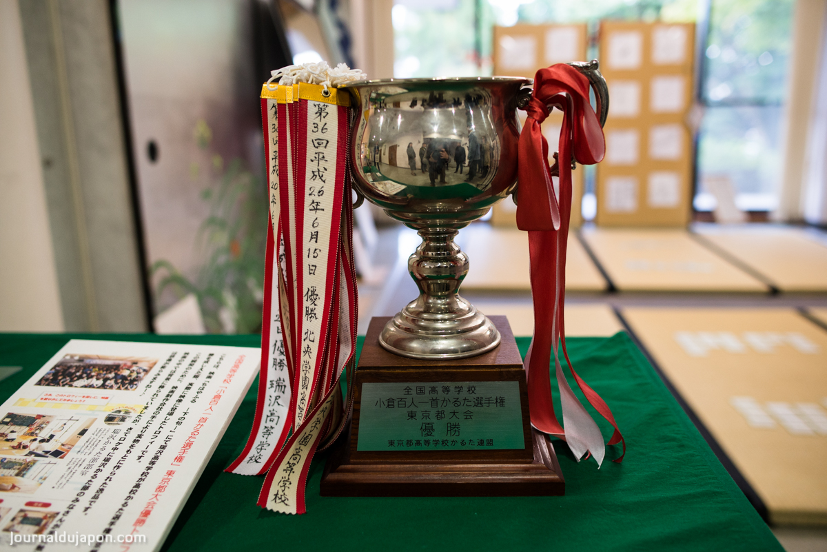 C’est dans l’enceinte même du sanctuaire que sont organisées les plus importantes compétitions de karuta : celle qui couronnera le Maître et la Reine, plus hauts rangs pour un pratiquant ou une pratiquante de Karuta, ainsi que la compétition nationale lycéenne du jeu. Lors de notre visite, nous avons d’ailleurs pu assister à une compétition internationale lors de laquelle des équipes du monde entier ont pu s’affronter. C’est d’ailleurs l’équipe française qui l’a emporté. Cocorico !