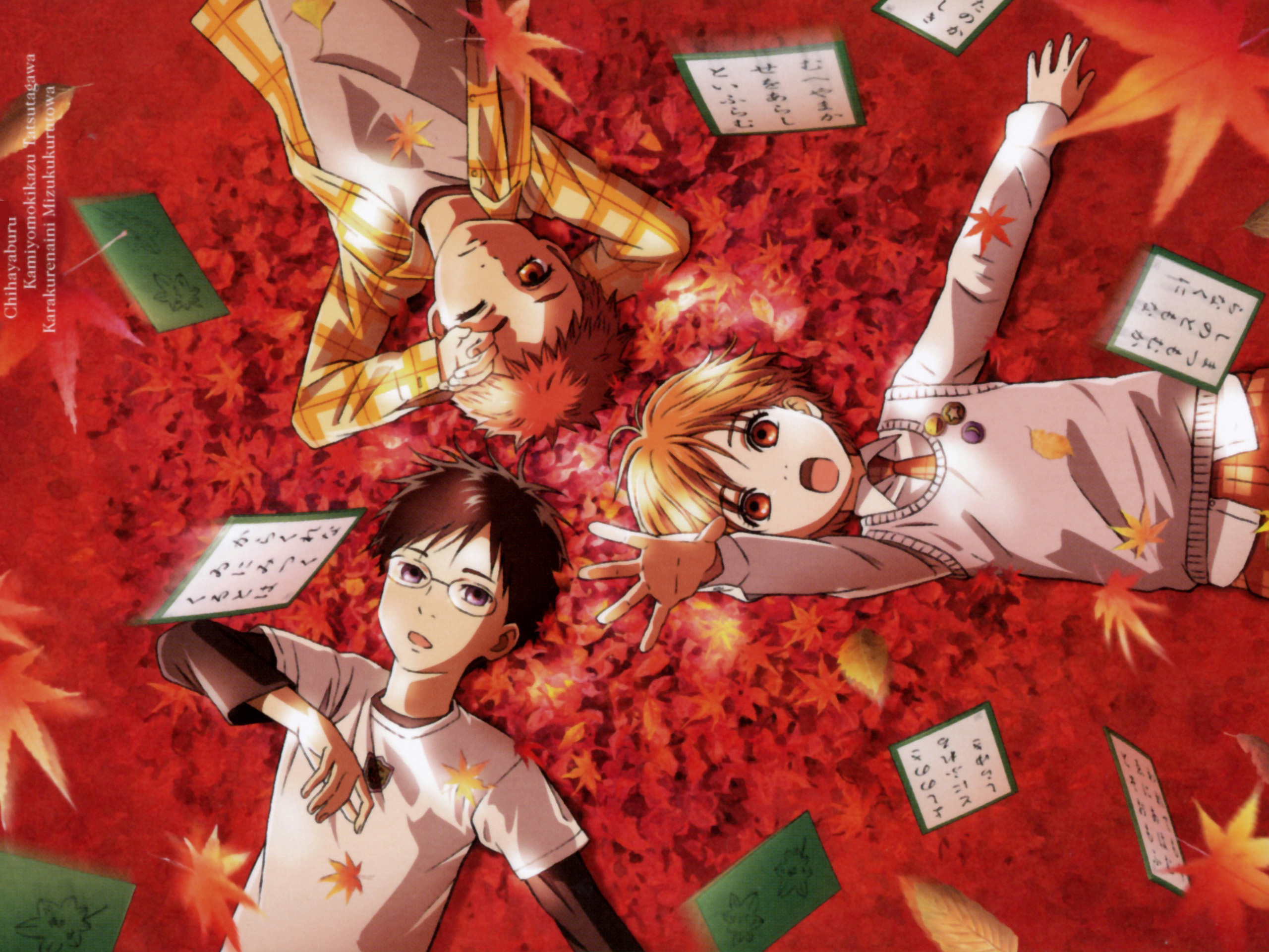 La jeune Chihaya AYASE est une écolière de la région de Tokyo au caractère volontaire et enjoué. Elle n’a qu’une passion dans la vie : sa grande sœur dont elle soutient à fond la carrière de talento (NDLR : starlette souvent modèle et/ou actrice de drama) naissante. Mais son univers va être chamboulé par sa rencontre avec Arata WATAYA, nouveau dans sa classe. Originaire de Fukui, son accent et son caractère solitaire le rendent rapidement cible d’ijime de la part des autres élèves de la classe, à l’exception de Chihaya qui va vite se lier avec lui et découvrir, par son intermédiaire, le karuta, sport dont Arata est un jeune prodige. En effet, Arata décèle rapidement en Chihaya un énorme potentiel pour le karuta grâce à une audition extrêmement fine, qualité déterminante pour une championne. Mais Taichi, autre camarade de classe de Chihaya, est rapidement jaloux du lien entre son amie et Arata, qu’il défie au karuta. C’est rapidement la naissance d’une belle amitié cimentée par la pratique du karuta pour Arata, Taichi et Chihaya qui se découvre ainsi une réelle passion.