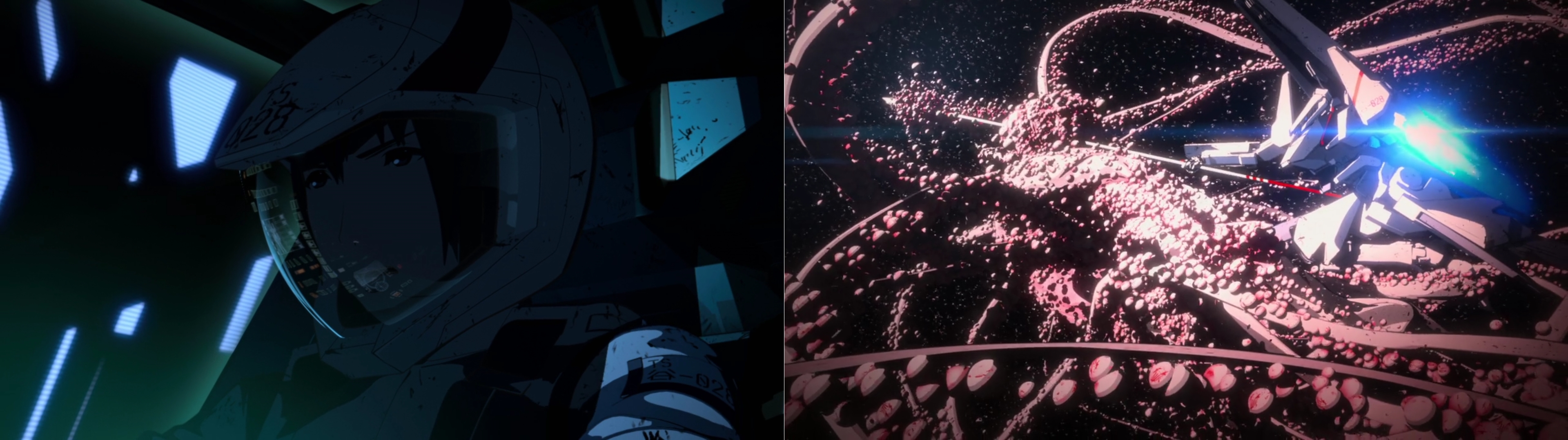 Quittons la Megastructure de Blame ! pour monter à bord du vaisseau-mère Sidonia. Cette adaptation devrait plaire au plus grand nombre : le monde est en apparence moins compliqué à comprendre et le format (série de 2 saisons de 12 épisodes chacune) facilite l’immersion dans cette science-fiction plus familière dont l’histoire de survie de l’humanité dans l’espace peut rappeler Battlestar Galactica. L’histoire s’ouvre avec Nagate Tanikaze, un jeune Sidonien affamé qui sort des souterrains où il vivait depuis toujours à la recherche de nourriture. Il n’a rien d’un héros classique et pourtant, il passera de voleur de riz à pilote du honorifique Tsugumori, machine qu’il connaît bien grâce aux entraînements avec son grand-père sur simulateur. Les derniers représentants de l’humanité en exode après l’attaque du système solaire par des Gaunas, luttent pour leur survie dans une société verrouillée et militariste. Si Blame ! est riche en influences occidentales, Knights of Sidonia est un seinen plus traditionnel aux inspirations japonaises. Moins manga de niche que la première œuvre de Nihei, on retrouve une histoire plus simple avec de nombreuses phases d’action; combats dans l’espace qui pourront rappeler de grandes sagas comme Gundam ou Macross Frontier, mais aussi des révélations et surprises tout au long de 2 saisons avec un triangle amoureux pour apporter plus d’émotions qu’un Killy, par exemple.