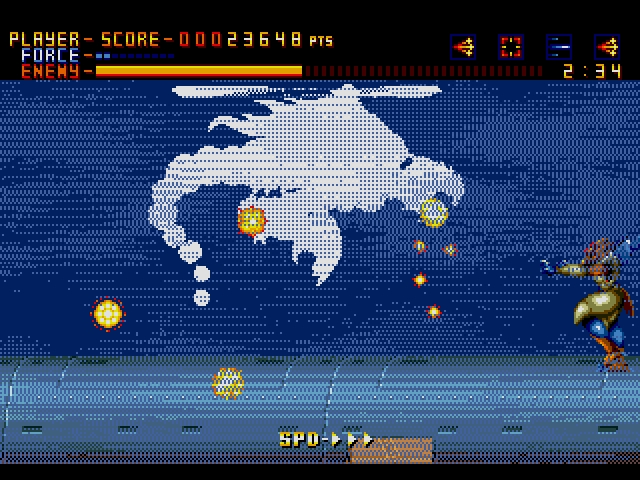 Finalement, cet « ovni » passé entre d’autres ténors de Treasure tels que Gunstar Heroes, Radiant Silvergun (1998, Arcade) et Ikaruga (2001, Arcade) s’avère être rempli de qualités et toujours un bon choix pour qui aime le challenge. C’est d’autant plus dommage que les ambitions placées dessus n’aient jamais pu être totalement remplies, mais pouvoir y jouer grâce aux plates-formes dématérialisées de nos jours est une chance. N’hésitez pas à le tenter si vous le pouvez !