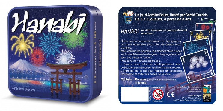 Hanabi est un jeu de voyage coopératif. Ce qui veut dire qu’en plus de sa petite taille parfaite pour être embarqué partout, tout le monde gagne ou perd «contre le jeu».