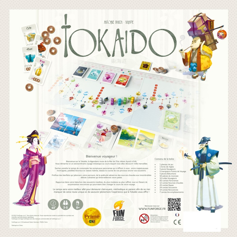 Crée par ANTOINE BAUZA, Tokaido est un simple voyage au travers du beau et long plateau épuré et des illustrations dignes des plus belles estampes (et dessinées par Naïade).
