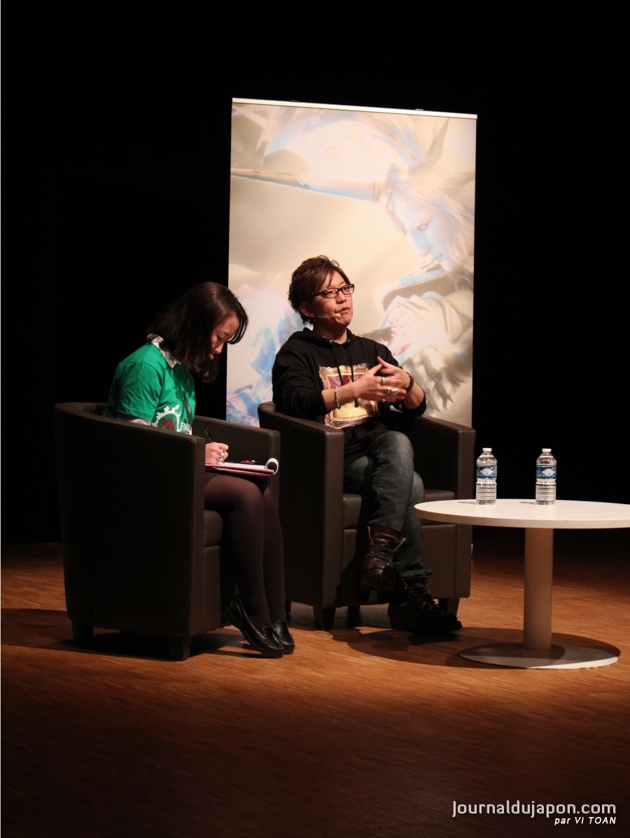 Lorsque l’on demande à Yoshida-san comment il décide d’implanter des éléments de scénario de Final Fantasy XII (avec le raid Return to Ivalice) et une race comme les Vieras, il nous répond en avoir d’abord discuté avec Yasumi MATSUNO, le concepteur du projet Ivalice Alliance. L’histoire fût écrite par ce dernier, et c’est donc son choix que d’apporter des éléments de FFXII. L’arrivée des Vieras n’est cependant pas liée à ce raid collaboratif, cela provient plutôt des demandes incessantes des joueurs, voulant jouer cette race, qui en sont à l’origine. Il aura fallu malgré tout beaucoup de temps aux équipes de FF XIV pour régler un problème de taille dû aux Vieras : leurs talons hauts. Naoki Yoshida nous confit qu’il faudrait certainement une conférence entière pour expliquer les paramètres techniques liés à ce problème, mais que le rendu actuel était suffisamment convenable pour le présenter au Fan Festival.