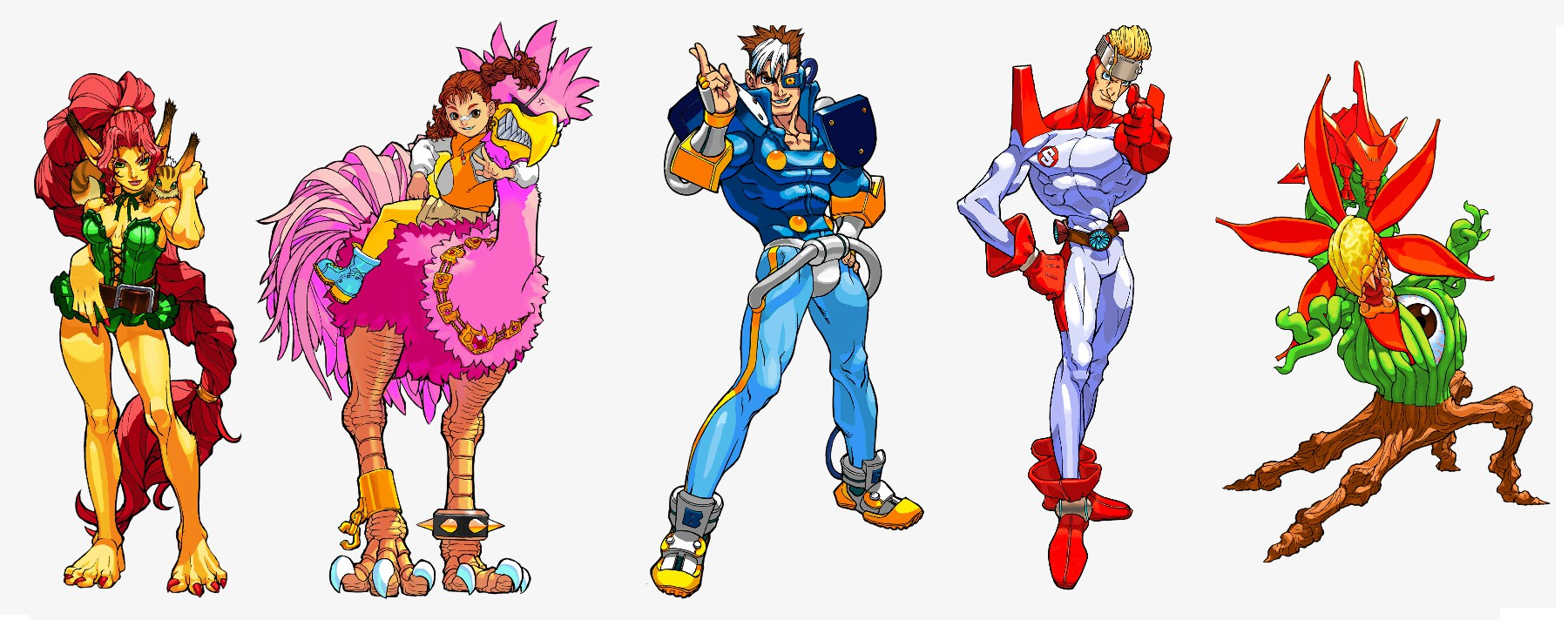 Parmi l’équipe créative, on trouve des noms comme Hiroki OHNISHI (qui a travaillé sur Devil May Cry 2 et Resident Evil 3 : Nemesis) et Kôji YAMAMOTO (Street Fighter 3) sur la partie graphique (décors, personnages), qui ont donné au jeu une ambiance plus « manga » que les autres BTU de l’éditeur. La bande-son a été composée par Syun NISHIGAKI (un certain nombre de Street Fighter pour lui aussi ainsi que, à nouveau, Resident Evil 2 et Dino Crisis). Une équipe d’habitués, donc.