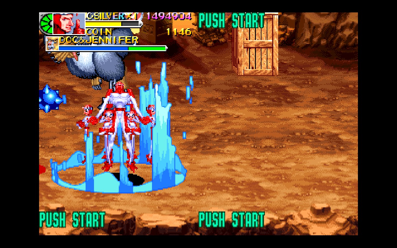 C’est donc avec l’un des cinq personnages jouables qu’il faudra traverser les sept niveaux du jeu, seul ou accompagné par trois joueurs maximum. Bien entendu, nous sommes dans Beat’em-up donc les stages sont ponctués de boss. Saturn n’a pas dit son dernier mot et ne manquera pas de se faire remarquer à nouveau. Et il n’est pas le seul dans ce cas…