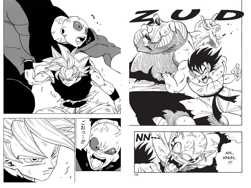 On retrouve le dessin habituel d’Akira TORIYAMA mais à travers la plume de Toyotaro (seul le scénario a été écrit par le créateur du manga). L’histoire est toujours aussi loufoque avec cet humour si particulier avec un Goku qui, s’il a le corps d’un adulte, a toujours l’esprit d’un enfant : parfois ses répliques ont une candeur qui ne cessera d’étonner, mais qui n’est pas toujours du goût de tout le monde… Nous n’avons pas pris la peine de compter, mais le pauvre bougre a pris un sacré nombre de tartes de la part de Beerus ! Et, à ses côtés, nos protagonistes de toujours sont là pour nous rappeler que cette série n’a pas pris une ride depuis sa création en… 1984 !