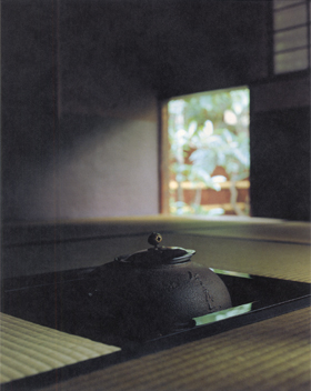 En utilisant des objets imparfaits, parfois brisés et réparés, au sein d’une pièce dépourvue de superflu, il a fait de ce moment où l’on déguste du thé une véritable communion pour l’esprit, qui se voit nourri des principes suivants : l’harmonie, le respect, la pureté et la tranquillité. On se