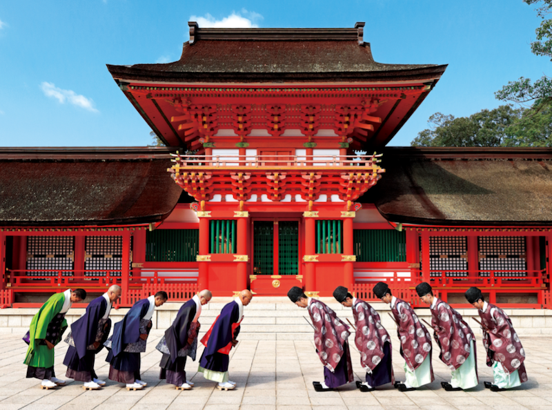 Avec la mondialisation et l’occidentalisation de la société, les Japonais se marient de plus en plus à l’église faisant reculer le mariage traditionnel au sanctuaire. La pratique de la religion au Japon est surtout une affaire de coutumes et de traditions : les Japonais ont pris l’habitude d’aller tantôt au sanctuaire shintō tantôt au temple bouddhiste selon les circonstances et les nombreuses fêtes du calendrier, sans y voir un quelconque pêché ou une offense aux kami ou Bouddhas. Par exemple, sans être forcément pratiquants, lors de l’hatsu mōde, ils ont pour habitude de se rendre dans les premiers jours de janvier au temple ou sanctuaire pour acheter amulettes et talismans ainsi que l’omikuji (divination écrite) pour s’attirer chance et bonheur tout au long de l’année. Ils sont aussi nombreux à assister à la cérémonie du Joya no Kane (« Cloches du réveillon ») qui se déroule au temple bouddhiste où la cloche sonne 108 fois, le nombre des désirs humains dit-on, dans la nuit du 31 décembre. La cloche aurait le pouvoir de débarrasser les personnes de ces 108 désirs pour commencer une nouvelle année avec l’esprit purifié. Le 15 novembre, la célébration du Shichi-go-san se déroule traditionnellement au sanctuaire même si des familles rendent visite au temple familial pour prier pour que l’enfant grandisse en bonne santé. Lors de cette journée, les enfants de 3, 5 et 7 ans revêtent les habits traditionnels japonais, kimono pour les filles et haori et hakama pour les garçons : une belle occasion pour une séance photo dans un studio pour immortaliser la journée réunissant toute la famille !