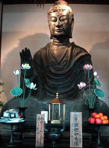 Au 6e siècle, au sud de la péninsule coréenne, le Royaume de Paekje (ou Paekche), où le bouddhisme est fort développé, est menacé par son voisin le Royaume de Silla. Paekje demande une aide armée à ses alliés du Japon, la Cour de la dynastie Asuka (où se trouvaient déjà probablement, un groupe important d’aristocrates coréens bouddhistes) et envoie dans ce but, une mission diplomatique chargée de cadeaux précieux, dont une statue de Bouddha, et des textes bouddhiques. L’aide du Japon ne suffit pas contre Silla. Vaincus, la noblesse et les lettrés de Paekje demandent l’asile au Japon qui les accueille définitivement. Ils marquent ainsi la culture japonaise qui adoptera un pan de leur culture, de leurs pratiques et croyances religieuses. Selon le Nihon Shoki (« Chroniques du Japon » achevées en 720), c’est l’empereur Kinmei qui donna leur chance aux Coréens de Paekje et à leurs traditions. Mais c’est son petit-fils érudit, le Prince régent Shōtoku, qui, en se convertissant, a conduit à l’implantation durable du bouddhisme au Japon. Deux moines japonais, Eisai et Dōgen, importèrent de Chine au 8e siècle les deux branches du Zen en fondant les écoles Rinzai et Sōtō. Le bouddhisme sera dès lors un moteur extraordinaire pour l’éducation, l’art mais aussi l’architecture.