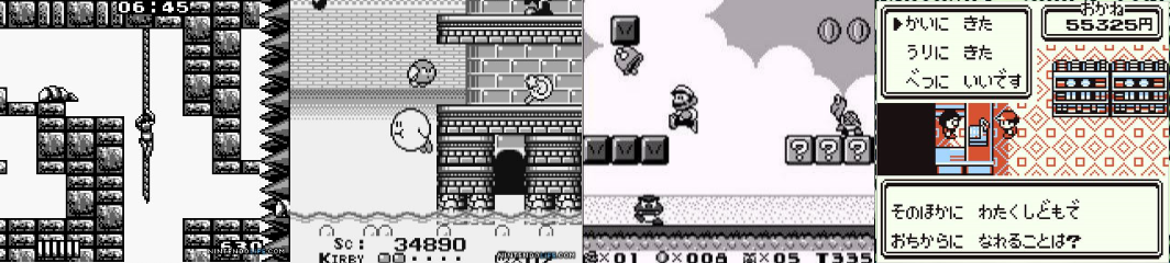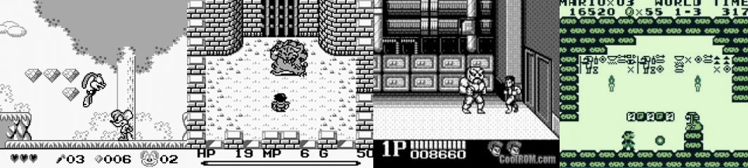 Castlevania : The Adventures (Konami, 1989), Kirby’s Dream Land (HAL Laboratory, 1992), Super Mario Land 2 (Nintendo, 1992), Pokémon Midori (Green Version, Game Freak, 1996)