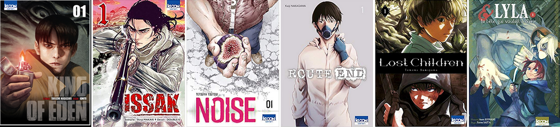 Allez, encore du thriller psychologique avec Route End ! Un jeune thanatopracteur s’occupe des cadavres que laisse un tueur en série derrière lui. Ceux-ci sont découpés pour former le mot « END ». Son patron, qu’il considère comme une figure paternelle semble être impliqué dans cette affaire. Le nettoyeur de corps va lui aussi se lancer dans l’enquête. Dans Lost Children, deux enfants liés par leur rencontre vont survivre dans un pays en proie à la révolution. L’un va rejoindre une armée de rebelle, et l’autre va vivre dans un village sacré au cœur de la jungle, mais ils ne pourront pas échapper aux tragédies qu’implique cette lutte des classes et les maux de leur société. Accrochez vous bien pour le dernier: Lyla & la bête qui voulait mourir raconte l’histoire d’Aron, un ajin (bête mi-humain mi-animal) qui a toujours été maltraité car les ajins sont tout en bas de l’échelle sociale. Il a été élevé comme un animal de chasse par un mafieux et a gardé le mental d’un jeune enfant. Il se réfugie toujours dans un livre de conte dont l’héroïne aux yeux bleus amène le protagoniste jusqu’au paradis. Un jour, Aron rencontre Lyla, dont les yeux ont le même bleu, et il espère qu’elle pourra l’emmener loin de ce monde. Même s’il désobéit à son maître pour s’enfuir avec elle, Lyla n’est pas prête à l’accepter, après tout, il a tué sa mère. Lyla va lui apprendre les sentiments en échange d’une chose : qu’il lui apprenne à tuer. Ce sacré scénario en quatre tomes promet du très lourd.
