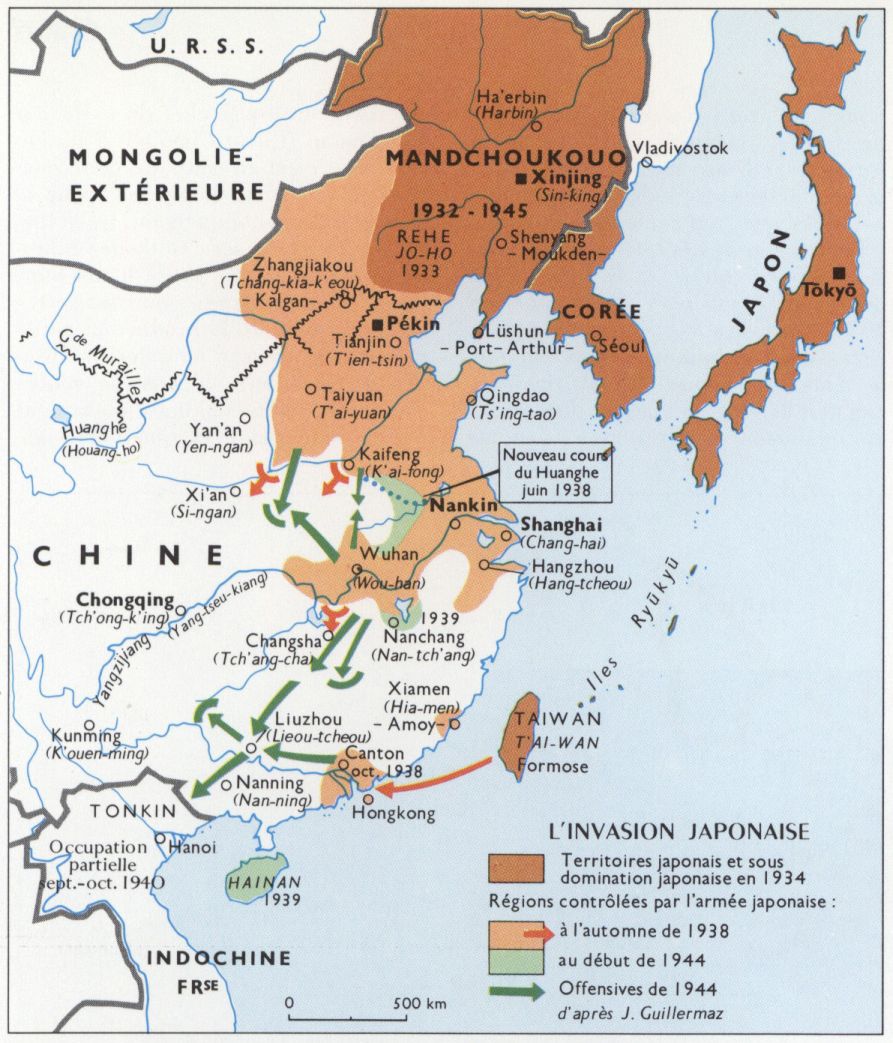En effet vous avez raison le nombre d’hommes japonais pour contrôler une partie de la Chine était très importante et c’est pourquoi après la victoire de pearl Harbor les japonais auraient dû débarquer des troupes sur le territoire américain vers Los Angeles mettant les ricains en panique. Mais les japonais étaient sur plusieurs fronts. Les troupes nationalistes chinoises étaient armés par l’Allemagne nazie en voyant leurs casques.