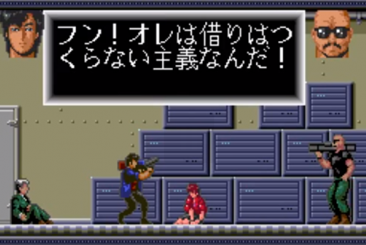 City Hunter ne sortit pas du papier que via un anime mais aussi en un jeu vidéo plutôt méconnu. Cette production signée Sunsoft mettait forcément le joueur dans la peau de Ryô et demandait de traverser cinq niveaux de long en large en tirant sur tous les vilains qui passaient. On devait faire le tour des niveaux vaguement labyrinthiques pour trouver différents objectifs. On tire, on court, on saute, et c’est à peu près tout. C’est un peu soporifique et c’est un peu dommage. Ryô apparait aussi dans le récent Jump Force (critique disponible ici) en tant que personnage jouable.