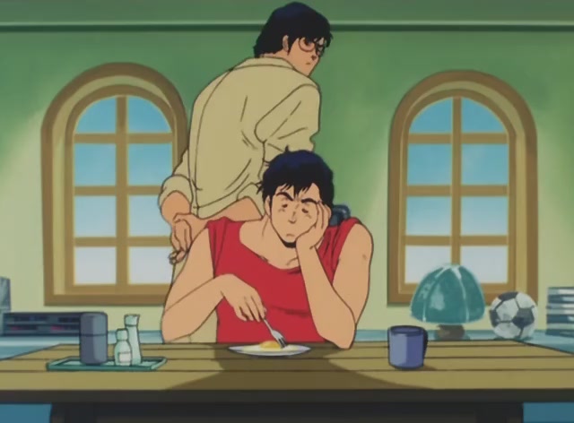 Le style graphique de HÔJÔ, si détaillé et crayonné, a été modifié pour mieux coller à un aspect animé mais reste très correct, allant en fait du bon au très bon selon les saisons. Il y a eu un ou deux épisodes assez laids faits en sous-main (vous savez, ces épisodes sous-traités ou réalisés à la va vite pour des raisons de coûts ou de retards de production, car il faut respecter les plannings. Ceux qui se souviennent de Nadia comprendront), mais le rendu reste plutôt bon pour l’époque. Malgré le nombre de personnages secondaires (les clientes) et le travail fait pour les adapter à l’anime, il y en a rarement deux qui se ressemblent (ça arrive quand même qu’on se dise « on l’a pas déjà vue, elle ? »). L’anime reste dans un modèle assez « classique » de speedlines (ces plans où l’on ne voit plus le décor mais juste des couleurs et lignes pour simuler un déplacement rapide) et de personnages secondaires immobiles dans les décors.