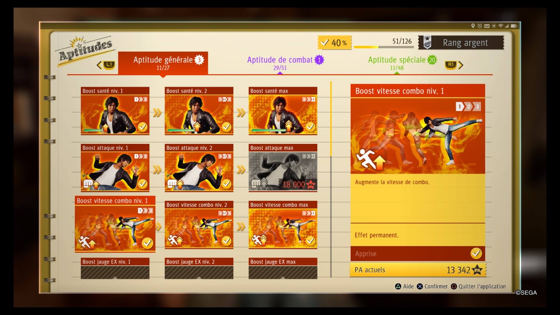 Comme son aîné, les combats sont aussi de la partie dans Judgment. Contrairement à Kiryu, le style de Takayuki est moins bourrin mais tout aussi efficace. Formé au kung fu, il maîtrise 2 types de frappes qu’il peut alterner à tout moment, selon les situations : techniques du Tigre, puissantes contre un seul ennemi à la fois, ou bien le style de la Grue pour frapper de multiples cibles, bien pratique lorsque l’on est encerclé d’ennemis. On retrouve aussi les Heat Actions, des finish destructeurs. Pas trop de surprise de ce côté du gameplay donc, hormis les nouvelles techniques de combat. Grâce aux points d’expérience gagnés lors des missions et des combats, on peut débloquer de nouvelles attaques et capacités spéciales mais aussi augmenter ses caractéristiques (santé, attaque, vitesse des combos…), une évolution très utile lors des combats contre les boss ou les chefs du gang Keihin, qui terrorisent les habitants et les commerçants de Kamurocho.