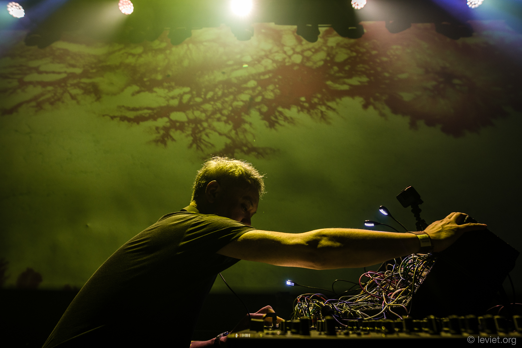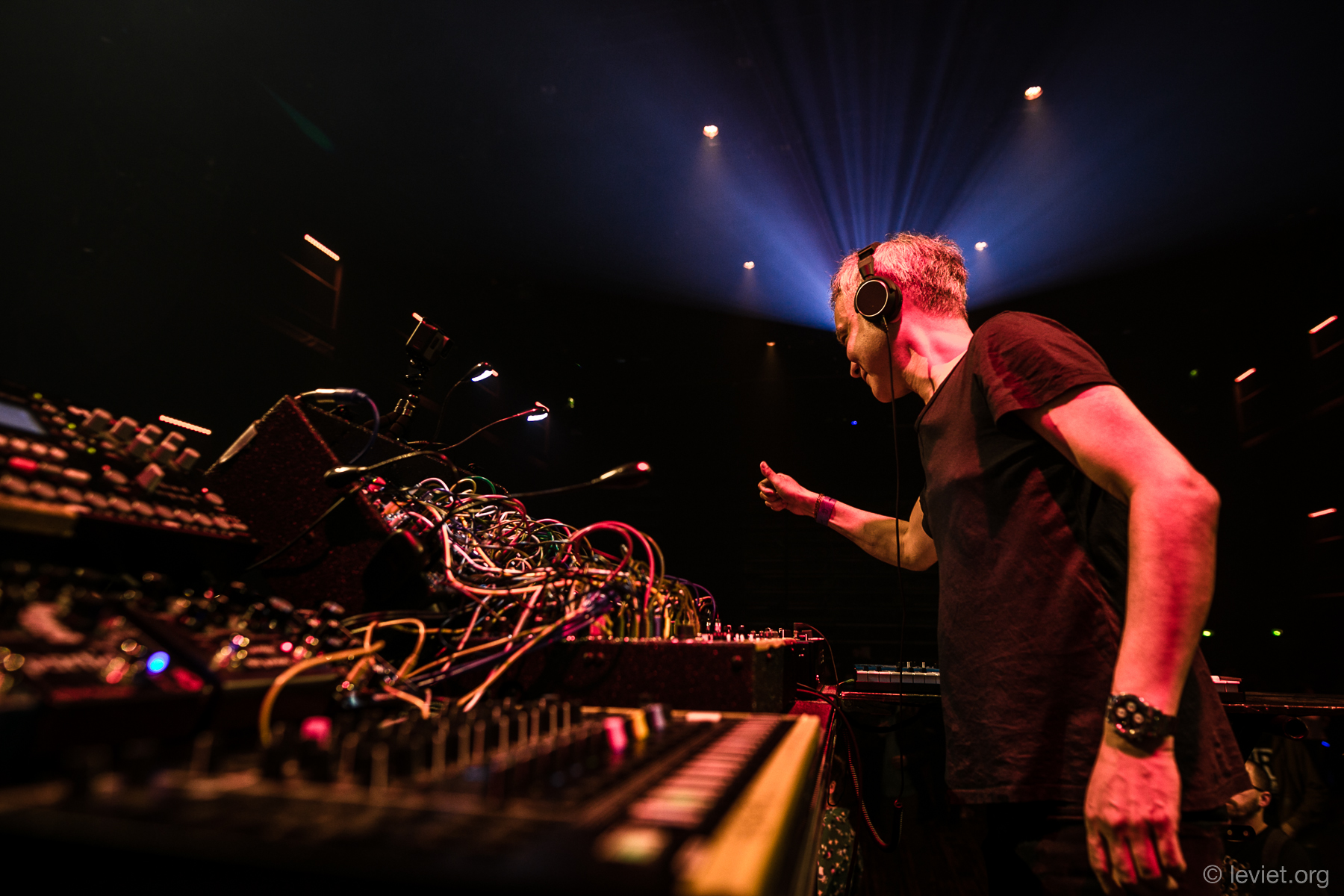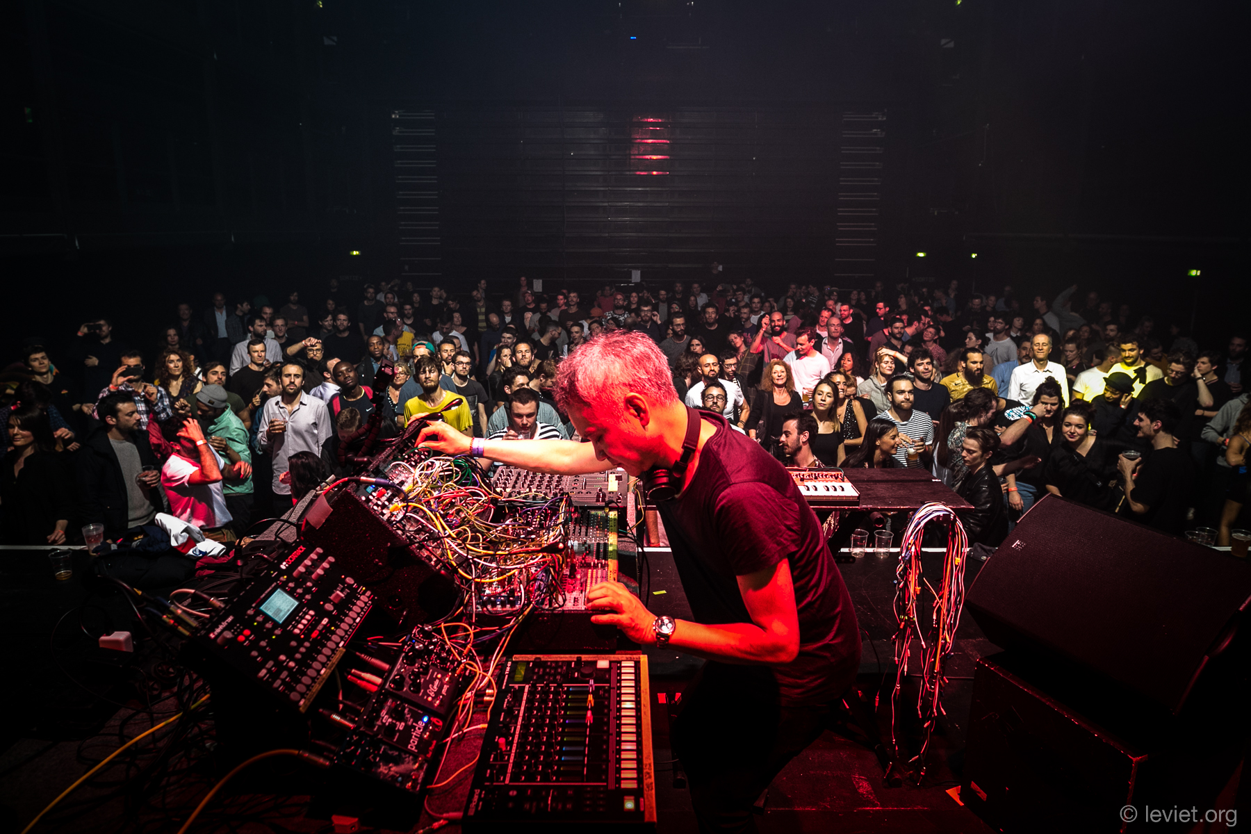 Il n’y a aucun préset, rien n’est pré-compilé. Tout était improvisé et composé en direct. Je ne savais pas vraiment ce qui allait se passer ! Finalement, c’est un peu comme le jazz : tu répètes en sessions, mais ce qui est produit en live varie. C’est comme une jam session de free jazz : tu détermines une clé, un rythme de base, mais au final, tu improvises là-dessus. J’ai passé plusieurs mois pour créer ce set. Ça a été des recherches intensives, tout de même ! Créer le set-up a été une chose essentielle, mais ça a été compliqué. Il faut s’assurer que tout fonctionne ensemble. J’ai beaucoup appris. En studio, tu peux prendre du temps pour monter, assembler, réparer des bouts de son. Sur un show en live, tu ne peux pas te permettre de prendre ce temps. Donc toutes les machines doivent être prêtes en amont.