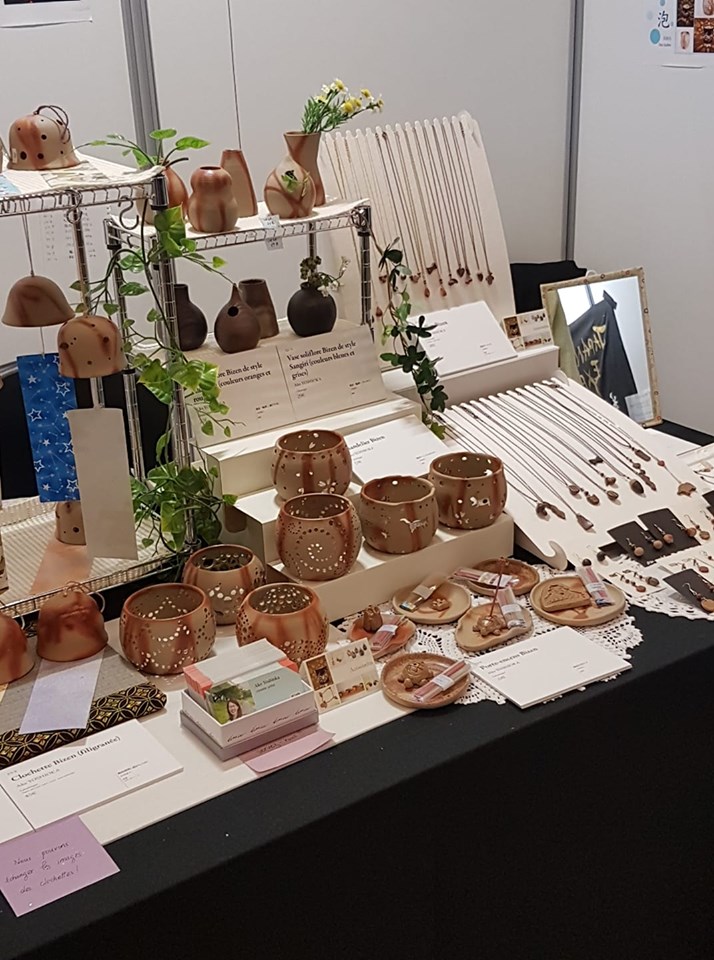 Du côté des exposants, il y avait aussi toute une variété de produits et un large éventail de la culture japonaise de représenté, que cela s’inscrive dans la pure tradition ou bien revisitée avec l’envie de s’affranchir du passé et/ou de s’ouvrir au monde. Comme chaque année, c’est toujours un plaisir de découvrir cette richesse de l’artisanat en convention : éventails japonais (kyo-senso), céramique, objets de décoration, broderies, bijoux, calligraphie, origami, accessoires pour le thé, tissus japonais, objets de prières… Il y en avait pour toutes les bourses même si soyons honnêtes, la qualité et le savoir-faire ont un coût. Il était tout de même possible de ramener au moins un petit souvenir de la convention pour soi ou bien un cadeau pour quelqu’un qui aurait souhaité venir.