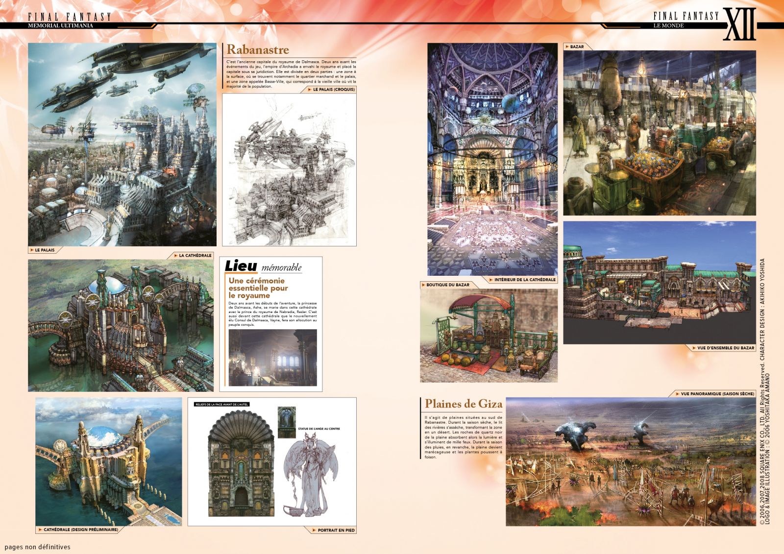 Plus qu’un simple «roman» du scénario ou du jeu – là où les autres ouvrages sur la saga tentent de décrypter l’univers, les thèmes, les personnages, etc. – il s’agit d’établir le profil d’un univers entier digne de Star Wars : le monde d’Ivalice. L’exercice est loin d’être facile puisque, même s’il est utilisé sur différents jeux dont les Final Fantasy Tactics en plus de Final Fantasy XII, Ivalice apparaît aussi dans Vagrant Story, autre chef d’oeuvre de Yasumi MATSUNO. Personnage à part entière des différents jeux, plus de la moitié de l’ouvrage est destiné à conter l’Histoire d’Ivalice en passant par ses religions, sa politique, son écosystème, ses différentes races ou encore sa création