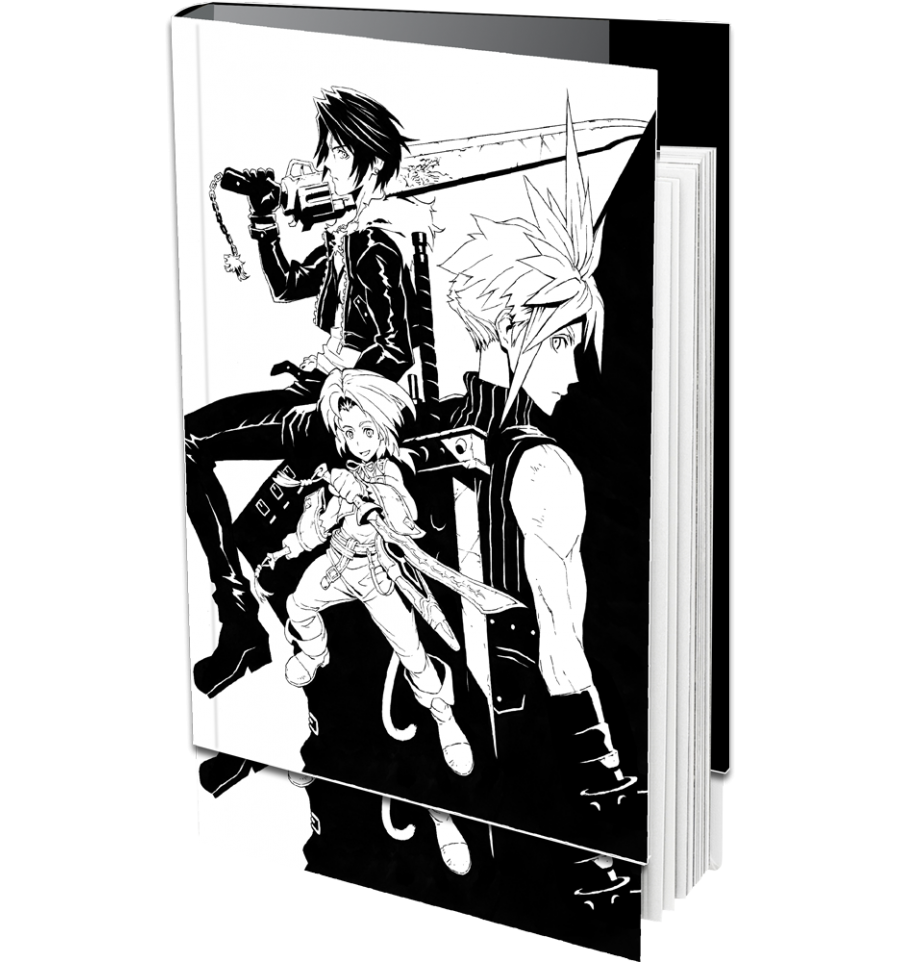 Si vous nous suivez assidûment, vous vous souvenez peut être qu’à Noël dernier nous vous vantions les mérites d’un certain Final Fantasy VII Ultimania, sorti en octobre 2018 ? Sans surprise, ce Memorial Ultimania se situe tout à fait dans la même lignée, tant sur le fond que dans la forme. On est donc toujours en présence d’un livre haut de gamme qui justifie largement ses 40€, soit un prix identique alors même qu’il compte 336 pages, soit près d’une centaine de plus que le FFVII Ultimania. Le tout intégralement imprimé sur papier glacé avec une reliure collée cousue qui garantira une bonne solidité dans le temps. Quant à l’épaisse couverture, cartonnée, elle jouit d’une finition mat et granuleuse au touché, avec le titre « Final Fantasy » en relief, aussi bien sur la première de couverture que sur la tranche. Autant dire que quand il ne sera pas entre vos mains, ce beau livre sera du plus bel effet sur vos étagères.