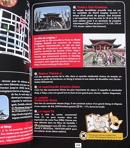 Exceptées les incontournables que sont Tokyo, Kyoto et Osaka, l’aspect geek était déterminant. Dans la majorité des cas, le lieu a un lien avec la pop culture. En ce qui concerne les mangas et les animes, j’ai essayé d’avoir une bonne balance entre des titres anciens et cultes, mais aussi des licences plus récentes et populaires. Je trouvais important de citer aussi des lieux d’exception qui, s’ils n’ont pas forcément un lien avec la pop culture, contribuent à nourrir notre imaginaire du Japon.