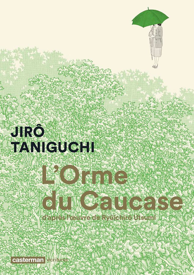 Je suis une grande fan du travail de Jirô Taniguchi. J’aime particulièrement ses petites scènes du quotidien qu’il croque avec finesse, délicatesse, tout en retenue mais avec une sensibilité qui me touche profondément. Mon livre de chevet est L’homme qui marche. Il ne se passe pas grand chose, mais un homme se promène avec son chien et on ressent le bonheur qu’il a à faire cette promenade quotidienne. Une autre fois, il s’allonge sous un superbe cerisier en fleurs, et ce dessin m’émeut à chaque fois : des pétales par milliers, un arbre et un humain … Ce rapport à la nature de Taniguchi est présent dans ses livres avec une force impressionnante. Que ce soit pour évoquer la flore, mais aussi la faune (on se souvient de la salamandre géante dans La montagne magique), il y a un amour profond et un respect sincère. J’ai donc hâte de découvrir cet Orme du Caucase qu’un homme ne se résout pas à faire couper bien que ses feuilles mortes tombent chez son voisin chaque automne… sa beauté ne peut disparaître !