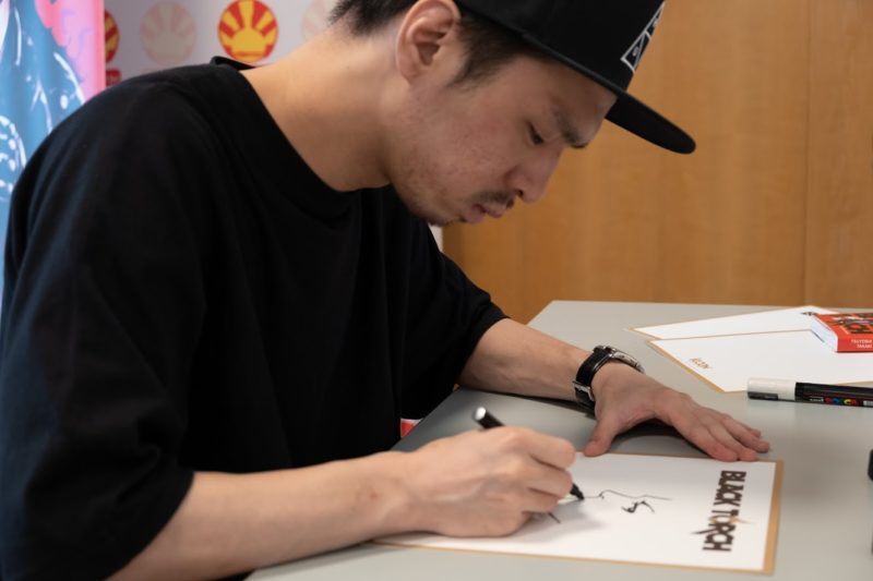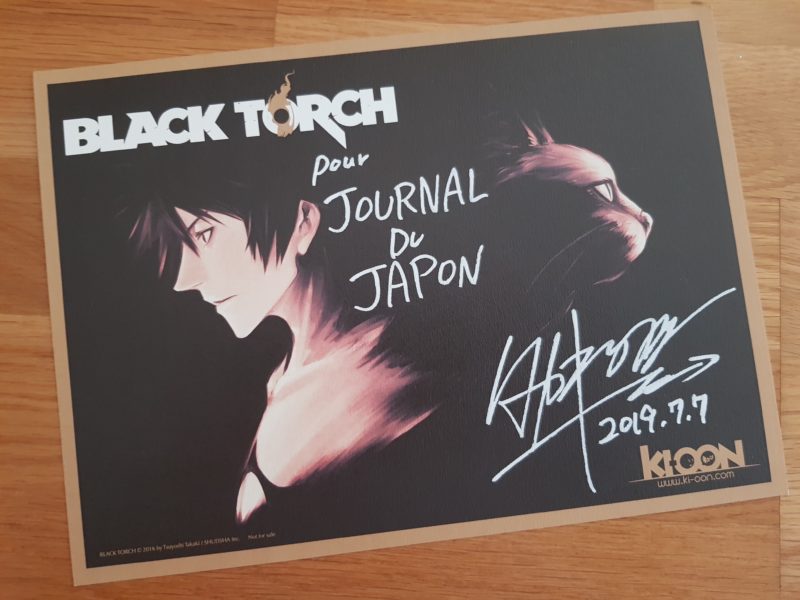 Bonjour, je m’appelle Tsuyoshi Takaki. J’ai dessiné le manga Black Torch et aujourd’hui, je fais une nouvelle série qui s’appelle Heart Gear publiée dans le web magazine japonais Jump+ (NDLR : Heart Gear est disponible gratuitement et en anglais sur l’application Mangas plus N.D.L.R et sera publié aux éditions Ki-oon cet automne).