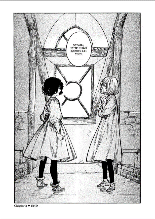 Sauvée in extremis par Kieffrey (revenu lui poser des questions sur le fameux livre qui l’avait interloqué lors de son passage) elle observe le sort qu’elle a dessiné se propager autour de sa maison et toucher sa mère qu’elle ne peut pas sauver… Et qui finit pétrifiée. Alors que la jeune fille est effondrée de voir ce qu’elle a provoqué, le sorcier lui explique que ce genre de drame est l’une des raisons du secret qui entoure la magie.