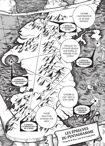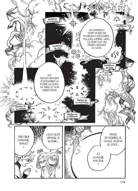 Via le parcours de Coco en tant qu’apprentie sorcière, Kamome SHIRAHAMA nous montre que tout s’obtient par un bon travail. Même si, à première vue, faire de la magie semble facile, il n’en est rien. Il faut apprendre de nombreux pentacles, la manière de les dessiner, l’ordre de l’agencement des éléments qui le constituent, les flèches propres à chaque élément. En plus de devoir s’exercer chaque jour, tout apprenti doit passer les épreuves du Pentagramme. Au total,ce sont cinq épreuves à passer pour devenir un sorcier accompli. Chacune ayant un but précis, de l’accréditation à apprenti jusqu’à devenir soi-même un maître en passant par la pratique de la magie en public. Les origines des épreuves du Pentagramme découlent de l’histoire tragique de la magie. Encore une trace de la richesse de cet univers, pensé avec beaucoup de soin et de détail.