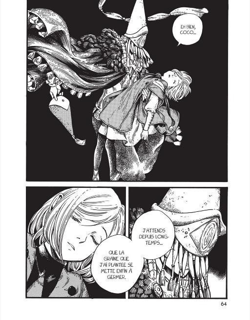 Puis, avec Kieffrey, Kamome SHIRAHAMA nous offre le maître sorcier tel qu’on en rêverait, du moins au premier abord. Un professeur qui est prêt à tout pour ses élèves, quitte à ne pas révéler à ses confrères la vérité sur Coco et se mettre à dos toutes les grandes instances magiques. Sa confiance et son estime pour ses élèves contribue à l’énorme respect que ces dernières ont envers lui. Contrairement à d’autres maîtres qui voient à travers leur élèves un moyen de se faire une renommée et qui n’ont aucune considération pour ces derniers, Kieffrey considère ses élèves comme des sorciers à part entière, qui ont leur propre vision de la magie. Mais derrière ce côté bienveillant, l’auteure a dissimulé une autre toile, trouble et intrigante, qui amène de nombreuses questions : pourquoi est-il obnubilé par le livre de Coco de la Confrérie du Capuchon, au point de prendre comme élève une simple enfant qui n’a aucune connaissance en magie ? Pourquoi user du sort d’oubli sur son entourage comme avec M. Nornois le fabricant d’encre magique chez qui il va se ravitailler ? Plus on avance dans l’histoire, plus le mystère qui l’entoure s’épaissit, et le nombre de questions ne fait qu’augmenter. On se demande ce que cette confrérie lui a pris ?