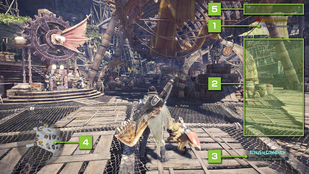 Néanmoins, certains pourront reprocher au jeu sa « casualisation », par le fait d’avoir rendu l’aiguisoir et la pioche de nature infinie, par exemple. En réalité, la limitation de ces deux objets dans les précédents jeux n’apportaient pas vraiment d’intérêt pour le gameplay et ne faisait que ralentir l’expérience. Ici, ce genre d’aspect a été gommé pour concentrer la difficulté sur les monstres ou alors ajouter plus de dimensions dans le choix stratégique de son équipement, avec les amulettes, joyaux et outils de survie. Si l’on devait trouver quelque chose à redire concernant la prise en main on pourrait toutefois parler de la caméra un peu incontrôlable quand on se retrouve dans un couloir avec un gros monstre ; mais les environnements généralement très ouverts de MH font de cette gêne un détail mineur. De plus, de nombreuses options sont disponibles permettant de personnaliser la caméra à votre aise : focus sur vous, sur le monstre, le réglage « silhouette » qui permet de régler la transparence de votre personnage derrière le monstre, etc.