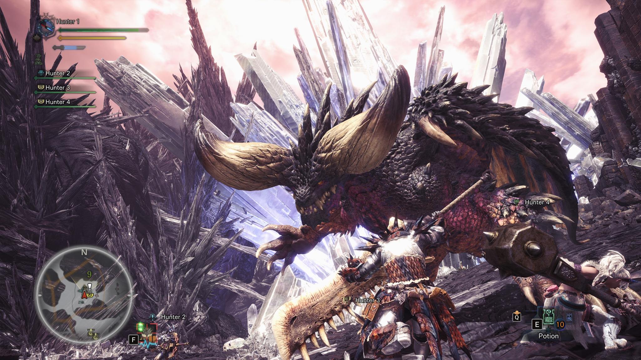 Quant au bestiaire, on retrouve forcément une bonne partie des monstres emblématiques de la saga avec tout de même l’ajout de 17 nouveaux pour un total de 29 au lancement du jeu ! Comme toujours les développeurs ont su se montrer inventifs avec des créatures aux paterns variés et à la difficulté grandissante. Il faudra s’armer de patience et des bons équipements pour venir à bout des « monstres experts ultime dragons anciens alpha » (Bon ok j’en rajoute un peu) ! Heureusement, vous ne serez pas seul, car le multijoueur est à l’honneur dans cet opus avec un système de coopération revisité et très facile à utiliser, que ce soit avec des amis ou bien des inconnus. Enfin, si les autres joueurs ne suffisent pas, sachez que vous pourrez également compter sur les autres monstres de la zone qui peuvent maintenant se battre entre eux. Ce genre de détail contribue à apporter plus de réalisme au combat, on a l’impression d’assister à la loi du plus fort sous nos yeux, donnant au jeu l’impression d’être moins scripté.