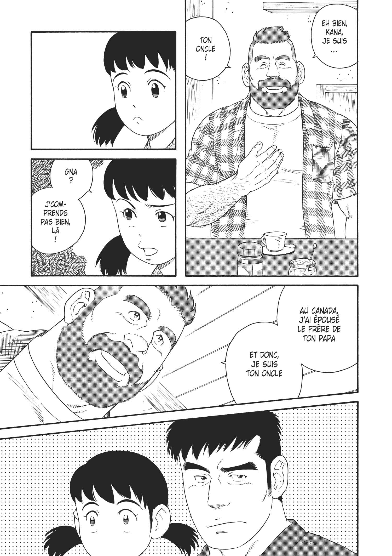 Narré du point de vue de Yaichi, ce titre nous donne l’intéressante perception et opinion d’un homme japonais hétérosexuel devant un étranger homosexuel ou même la différence de culture entre un japonais et un étranger, tout simplement. Mike est un gros ours affectueux qui n’hésite pas à pleurer et à faire des calins à la petite Kana à la moindre occasion, alors que l’on apprend d’abord que Yaichi n’a pas pleuré à la mort de son frère puis, il explique autant à son beau-frère qu’à sa fille qu’un japonais n’a pas ce genre de démonstration affectueuse, même avec les membres de sa famille.