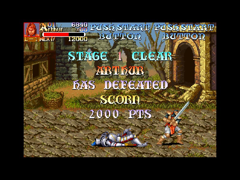 Comme vous avez pu déjà le lire dans de précédents numéros de la rubrique, le genre Beat’em-up (BTU) fait partie des plus prolifiques en salle d’arcade, au cotés des shoots. Entre 1985 et 1995 principalement, ce sont deux des genres maîtres. Capcom est l’un des principaux éditeurs dans le genre, après avoir proposé des titres cultes comme Final Fight. Le jeu qui nous intéresse ce mois-ci est bien du même genre, mais le décor et l’époque sont tout à fait différents : ici on quitte les rues mal famées pour se retrouver au Moyen-âge aux cotés des chevaliers de la Table Ronde !