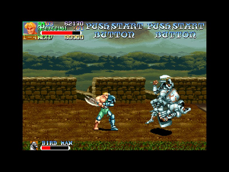 Etant un side-scrolling beat’em-up dans la plus pure tradition, Knights of the Round vous fera donc voyager de gauche à droite dans différents niveaux dans lesquels il faudra éliminer des hordes d’ennemis et de boss en contrôlant au choix Arthur, Lancelot ou Perceval. Le jeu proposait, de façon évidente, de jouer jusqu’à trois, histoire d’y aller entre chevaliers valeureux !