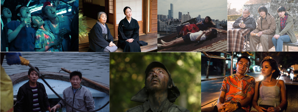 De gauche à droite et de haut en bas : And your bied can sing de Sho MIKAYE, Dans un jardin qu’on dirait éternel de Tatsushi OMORI, The Kamagasaki cauldron war de Leo SATO, Family of strangers de Hideyuki HIRAYAMA, Oyster factory de Soda KAZUHIRO, Fires on the plain de Shin’ya TSUKAMOTO, Bangkok nites de Katsuya TOMITA