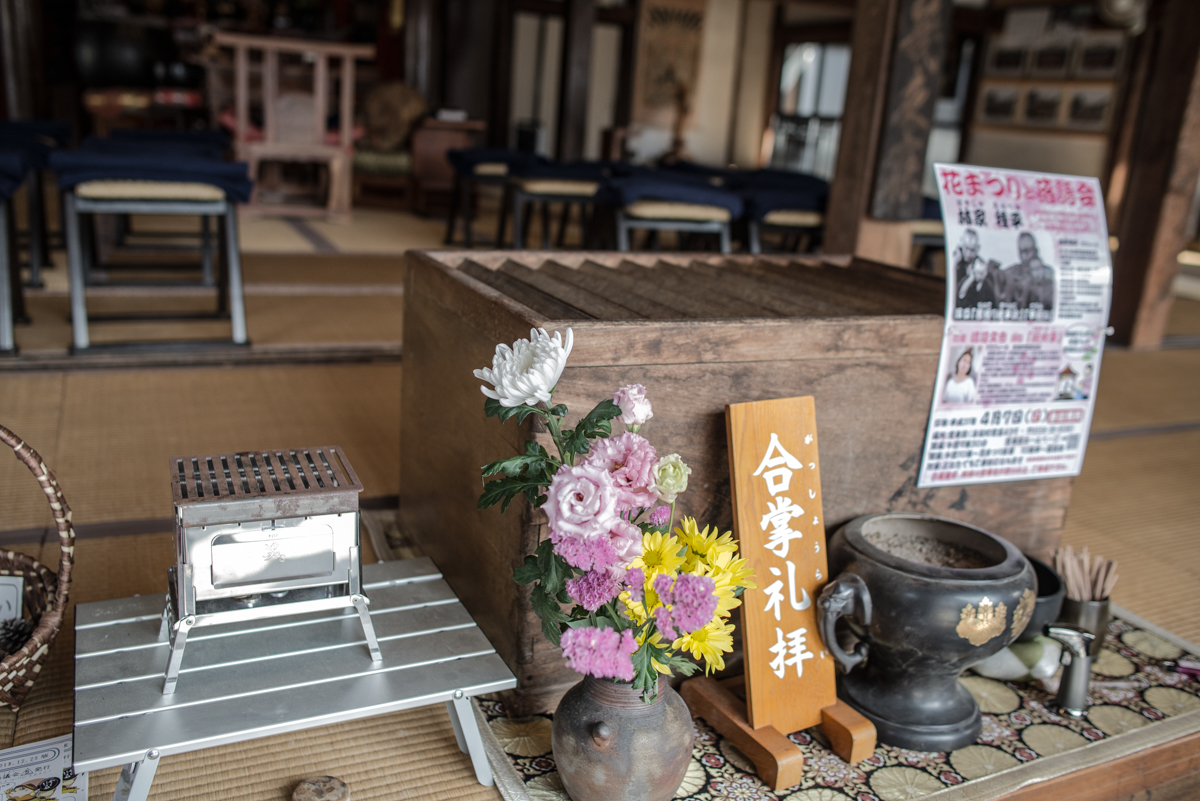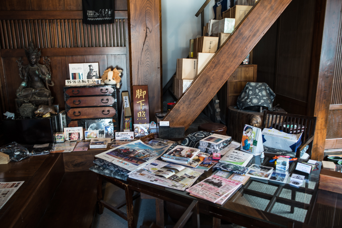 Un peu plus bas dans le village, on trouve aussi un charmant temple, le Jokoin, qui a consacré un petit autel à Yuru Camp, en hommage à l’éclairage que la série a apporté au village et à la région. On verra d’ailleurs, aussi surprenant que cela puisse paraître, que ce n’est pas l’unique temple a avoir célébré Yuru Camp !