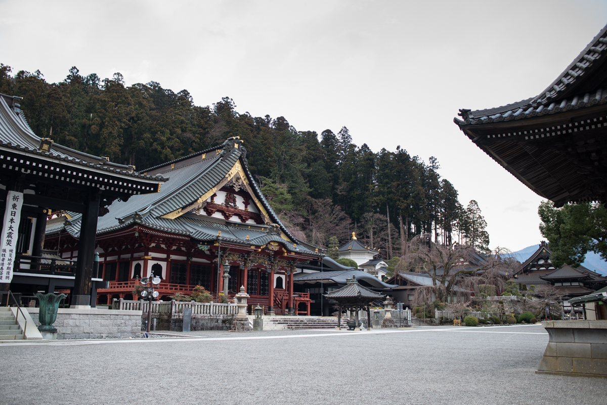 Cet énorme temple est bâti sur l’ensemble du mont Minobu et rassemble un très grand nombre de bâtiments de cultes (portes, pagodes, monastères, etc.).