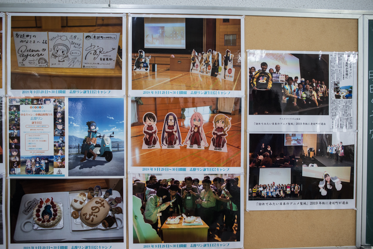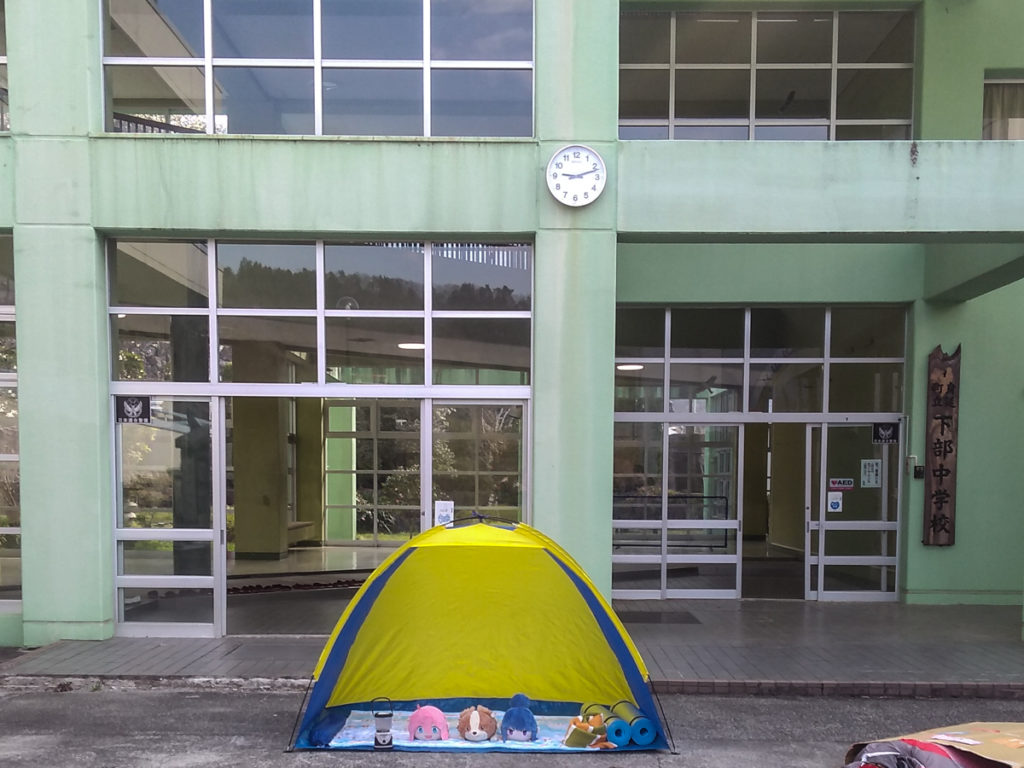 C’est à proximité du lac Motosu, un peu plus loin sur la route, que se trouve le collège Shimobe. Fermé depuis quelques années, ce collège d’un petit village appartenant à la municipalité de Minobu, a servi de modèle pour le lycée Motosu que fréquentent les héroïnes de la série. La célébrité de l’anime a par ailleurs permis à l’endroit (encore utilisé pour certaines activités sportives des jeunes du village) de reprendre vie le temps d’un festival de musique Yuru Camp.