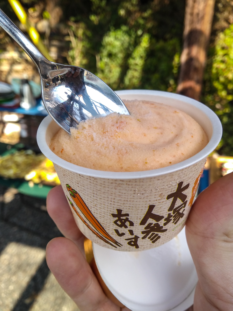 On y a d’ailleurs profité d’un délicieux barbecue à base de produit locaux dont la fameuse carotte longue de Otsuka, une carotte au goût très doux et utilisée de mille manières puisqu’on l’utilise pour faire des sauces, des pickles, des desserts (glaces) ou encore du sel !